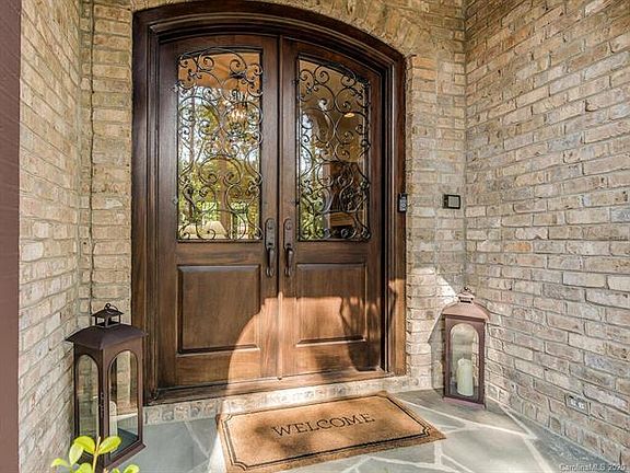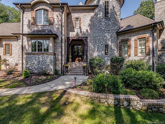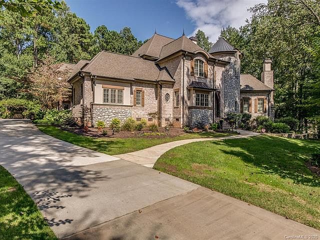 Situated on 2.5 private acres old world charm meets luxury w/stone and brick craftsmanship in this stunning custom home. Details abound w/stone turret gracing the front w/wood and brick creating old world elegance. Brick covered front porch-foyer open to dining room-curved wood-iron staircase-two story great room w/stone fireplace w/stunning custom wood floors. Huge Chef's Kitchen is open to two story great room and breakfast room. Light filled chef's kitchen w/high end appointments overlooks custom courtyard. Main level owners suite-wing w/luxury bathroom, dual closets and a separate private office-study offer owners a comfortable sanctuary. Main level 2nd bedroom suite is private for guests. Three bedroom suites, two full bathrooms, family room, media room w/2nd staircase & bonus room round out the upper level. Screened in porch w/fireplace off great room w/grilling station offers year round enjoyment w/private back yard-patio. Laundry-drop zone w/easy access to 4 car garages.