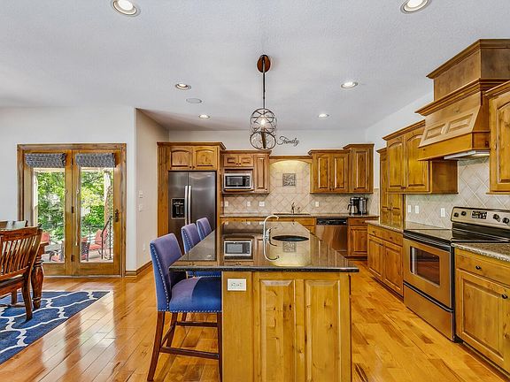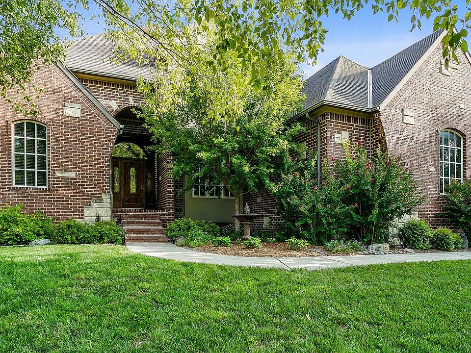 This custom brick 1.5 story home is IMPRESSIVE in every way! The dramatic brick 2 story entry opens to a beautiful foyer, the formal entrance to this stately home. The heart of the home is the high-end kitchen with floor to ceiling windows overlooking the beautiful pool and lush landscaping in the backyard. The kitchen features large plank wood floors, an enormous 8-foot granite island, spacious walk-in pantry, stainless steel appliances, and a large informal dining area. You won’t be short on places to dine because in addition to the eat-up island and informal dining room, there is also a formal dining with plenty of room for those black-tie dinner parties. The kitchen is open to the living room which centers on a limestone fireplace, built-in shelving, and cabinets, and more of those dramatic windows that frame the backyard oasis. Those windows and that VIEW continue in the main-floor primary ensuite, comprised of a sunny bedroom, huge walk-in closet, private water closet, jacuzzi tub, and a double vanity with solid surface counters. Upstairs you’ll find a full bathroom and two huge bedrooms, both with walk-in closets. The basement has two more huge bedrooms (both with walk-in closets, one featuring a concrete storm shelter), a full bath, wet bar, and a bonus room. Will it be an office? Gym? Theater? The options are endless! There is basement storage, as well as a custom storage area built in the oversized 3 car garage. Once you make it out back, you won’t want to leave! Lush green lawn and landscaping along with the mature trees provide privacy as you enjoy the various entertaining areas. The deck has removable shades and pull-down blinds to ensure a relaxing and protected seating area. The pool deck, back patio, and firepit rock area provide plenty of seating options. The salt-water pool has an automatic cover, a heater/chiller, and a jump rock for all the daredevils in your life. As if the house wasn’t enough, Andover schools, Sedgwick taxes, and NO SPECIALS round out this fabulous home!