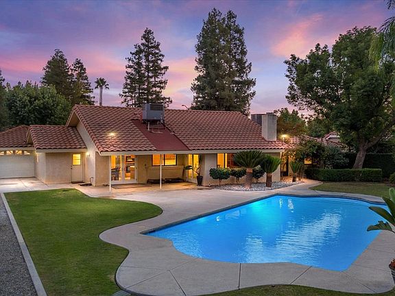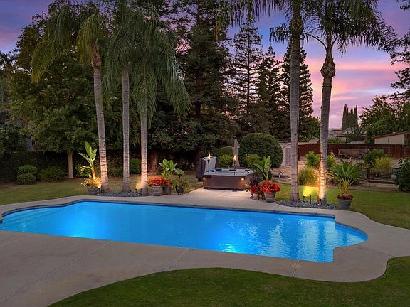 Stunning Santa Barbara style home with pool on a huge lot zoned RS for all your favorite 4-h projects. picturesque mature landscaping front and backyard. Large driveway with 50 amp RV plug in and drive through garage. This home has so much character with beautiful Spanish tiled courtyard/ wrap around porch with church pew and fountain, double door entry, exposed beams, open living room, beveled wooden floors, neutral 2 tone paint with plantation shutters, and corner brick fireplace. The rooms are all very spacious and the main suite has 2 closets. Guest bath tastefully updated. Upscale dual pane Milgard windows throughout installed in 2021. High end bullfrog hot tub installed in 2019. 20x30 Fenced in raised bed garden with below ground 3 zone auto irrigation & 2 10x10 storage sheds. This home is incredibly clean and shows very well.