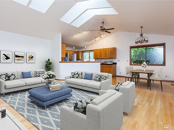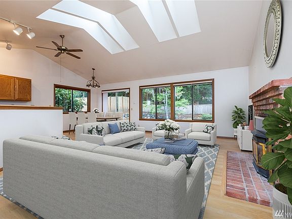 Well maintained rambler in the quite & desirable Possession Bay Highlands. The light filled home features a wonderful open floor plan, soaring ceilings, skylights & cozy fireplace. The gourmet kitchen features granite countertops, wall oven, microwave & built in eating space. Master suite with en suite 3/4 bath & large walk-in closet. Enjoy the beautiful landscaped & private fenced backyard. Easy access to 405, I5, Boeing, services and Mukilteo schools.
