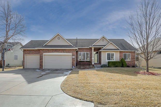 Looking for 4 FULL baths??? This is a tough feature to find and this lovely home in Rocky Creek has 2 full baths upstairs AS WELL as downstairs!!! The basement layout of 2 bedrooms and 2 baths make it ideal for the popular Mother in law suite, 2 teens or a teen and a guest room. This home has a very friendly open floor plan with large combination kitchen, 14x15 hearth with gas fireplace and eating space with view of the living room, perfect for entertaining. Kitchen features gas cooktop, granite counter tops, hard wood flooring, pantry, eating bar and newer stainless steel appliances including refrigerator. Main floor laundry is its own separate room with a sink, not a pass through! You won't believe the amount of natural light in this home, both on main floor and in the walk out basement! Master suite has a large window overlooking the back yard and a large master closet with built in shelving. Master bath has dual sinks, whirlpool tub and separate shower. The home also has two hot water heaters so you never run out of hot water! Walk out basement has generous storage, wet bar and huge family room with split bedroom and bath layout. Fenced back yard with sprinkler on irrigation well, mature trees and covered deck for enjoying it all. This home has so much to offer and is in the coveted Andover school district yet still in Sedgwick county! Lovely neighborhood with community pond, pool and playground. Set up your private viewing today!