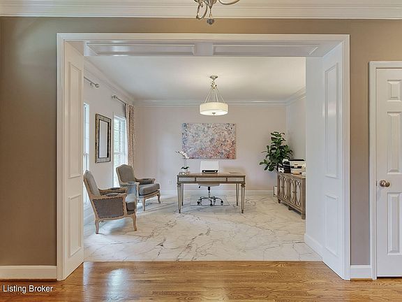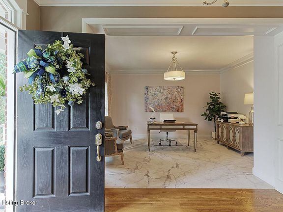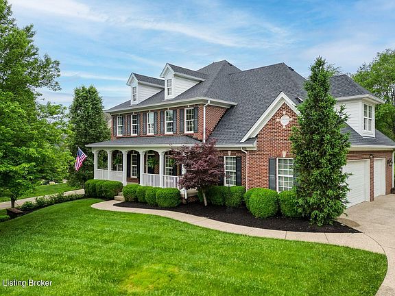 Sitting atop a hill in the sought after Longwood neighborhood in beautiful Goshen, Kentucky, this quintessential Southern living style two-story home exudes charm and elegance. As you approach the home from the street visitors are welcomed home by a classic covered front porch. Upon entering, you're greeted by a spacious foyer with gleaming hardwood floors and an abundance of natural light streaming through large windows. The interior design exudes a perfect blend of sophistication and comfort, with a neutral color palette complemented by accents of rich wood and soft textiles. The heart of the home is the inviting living room, complete with a cozy fireplace framed by built-in bookshelves, perfect for displaying cherished mementos and family photos. Adjacent is the gourmet kitchen, boasting custom cabinetry, granite countertops, a gas cooktop stove, and stainless steel appliances, ideal for both culinary enthusiasts and casual entertainers. the cozy hearth room opens to the kitchen adding a casual gathering space around a fireplace while being an integral extension of the kitchen area. A covered back porch accessed from the hearth room overlooks the lush back yard providing a wonderful outdoor space for relaxing or alfresco dining. The flat back yard is ideal for activities including gardening or sporting endeavors, while offering privacy as it backs up to a farm property. The formal dining room with custom drapes offers a space for elegant dining or large family gatherings. A first floor office with designer carpet is a flexible space just off the main entry foyer for easy at home work. A half bath between the kitchen and main living areas is in a perfect location. A hall off the kitchen to the garage provides a transition area with cubbies for backpacks and shoes. Upstairs, the luxurious master suite offers a peaceful retreat, featuring a sitting area, a spa-like ensuite bathroom with a soaking tub, and windows overlooking the manicured backyard. Three additional bedrooms and two full baths provide ample space for family , each thoughtfully designed with comfort and style in mind. The second floor also includes unfinished space (approximately 359 square feet) with room for an additional bedroom or bonus space whatever captures your imagination. A second floor laundry room is a wonderful convenience. The walk out lower level is currently set up for multi-generational living with a living room, huge full kitchen and dining area, plus a bedroom, full bath, and separate second laundry area. This would make a wonderful space as a guest suite or just extra space for entertaining family or friends. Located in the desirable community of Longwood, residents enjoy walkability to the desirable North Oldham Campus, scenic parks, and a neighborhood pool, clubhouse, plus tennis courts(or pickle ball).