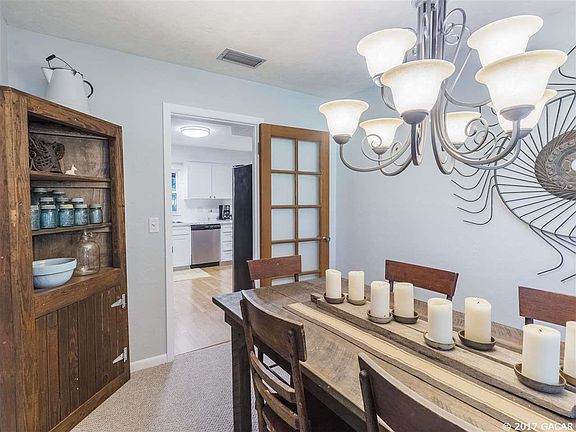 Southern Florida charm welcomes you in the traditional ranch style brick home on 1.87 acres, located in High Springs, Florida. Home interior features include: 3 spacious bedrooms with deep closets, 2.5 bathrooms, 1996 heated and cooled square feet, a one care garage with storage, large utility room with sink, lovely white kitchen with stainless appliances and newer counter tops, formal dinning room, formal living room, family room with brick wood burning fireplace, breakfast nook and bar, and storage galore at every turn that's perfect for all of your relics. On the exterior enjoy the following features: gutters, a private lot with pole barn, fire pit area, circular drive, a large screened patio and a covered porch areas off the front and back of the home. This roadside home is centrally located and convenient to Gainesville, Alachua, Newberry, and downtown High Springs.