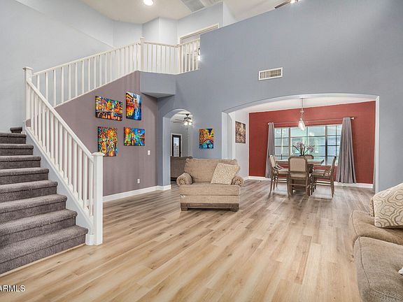 Terrific opportunity for a family home in an excellent location. Dysart Ranch is close to loads of shopping, restaurants & fwy access. Welcoming front covered patio greets you to Over 3000 sf with OWNED SOLAR! Soaring ceilings creates a spacious open floorplan. 4 BEDROOMS+OFFICE+LOFT is perfect for family living. The island kitchen looks out towards the private resort style backyard. Sparkling POOL, fire pit, artificial turf & gazebo is perfect for large gatherings.