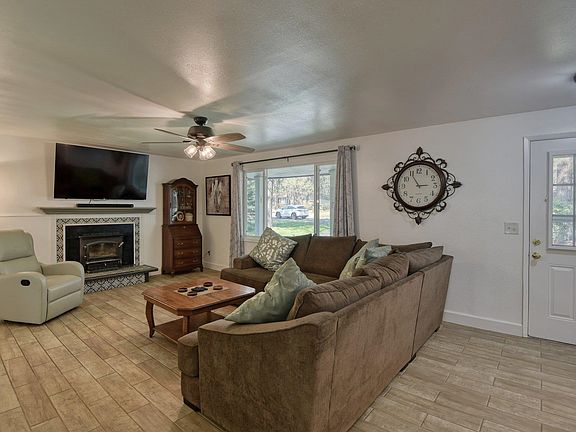 Welcome to this charming 4-bed, 3-bath home nestled in the serene community of Nine Mile Falls. Set on over 1 acre of lush, grass-covered grounds shaded by mature trees. Enjoy peaceful moments on the covered back porch, perfect for relaxation. Inside, you'll find a modern living room featuring a cozy fireplace that seamlessly flows into the dining area & kitchen. This home has been thoughtfully updated with a new hot water heater, rebuilt AC, & brand-new appliances, including a stove, fridge, dishwasher, & washer/dryer. The interiors boast new floors, fresh paint making it move-in ready. Outside, the property includes a unique water conservation system with sprinkler & drip lines, a delightful water feature, & a spacious 2-car garage. There's also ample RV parking & a convenient storage shed. For equestrian enthusiasts, a tack house & horse setup are included, as well as an above-ground pool. Additionally, you’ll enjoy deeded access to the water, enhancing the tranquil setting of this picturesque home.