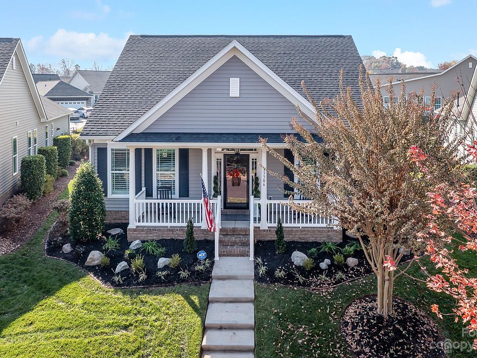 Enjoy the fabulous view of one of Baileys Glen many parks with large waterfall feature from this generously enhanced Hunter that sits on a premier lot with oversized rocking chair front porch. The upgrades begin as soon as you step into the welcoming extended foyer with beautiful wood floors, shutters and lighting that carry throughout the home. The foyer is bright and is flanked by an open office/flex space and spare bedroom with full bath. You are then welcomed by the wonderfully customized open concept kitchen and great room that just begs for you to entertain family and friends. Your connected enlarged dinning area provides an abundance of natural light which walks out to your large meticulously landscaped back patio. Don't forget to enjoy your peaceful primary bedroom and bath which definitely was not forgotten about when adding the upgrades! This is truly a 1 of a kind that boasts more upgrades than can be listed! Live everyday like you are on vacation with all the amenities!
