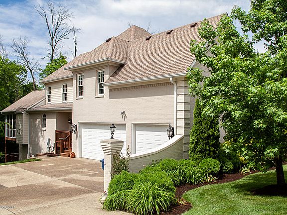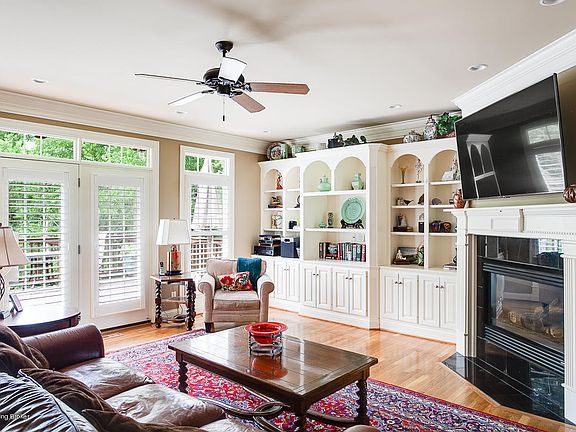 Triple arched opening leading into a spacious gathering room featuring grand built-in bookcase, marbled corner fireplace, hardwood floors throughout and entrance to deck. The gourmet kitchen boasts custom cabinetry, Venetian gold granite counter tops, double built-in ovens, and beautiful island capable of seating four. Kitchen opens to a large hearth/eating area featuring a second fireplace. The hearth room boasts a wall of windows with enormous sliding French doors to an over-sized screened in porch providing an expansive private view of the backyard, and a side entrance to deck area. The first floor owners suite is nestled at end of hallway, king sized and features built in breakfast nook, trey ceiling, his and hers closets, and spa bathroom with his and hers vanities, featuring a centering large jacuzzi tub. Second floor holds four bedrooms (two suite-sized bedrooms), three full baths; one is a Jack-n-Jill. Upstairs Bedrooms have built-ins, niches, and a balcony! Largest second floor bedroom could easily serve as a second floor Master Bedroom. Spacious recreational space in walkout basement offering wet-bar area with built-in refrigerator space, two entrances to large lower level deck, and grand office or 6th bedroom with double closets. Large windows throughout, tons of additional storage space with built-in shelving and workshop area! Over-sized 3 car garage, sprawling 1.09 acre lot, beautiful neighborhood sharing the same street as North Oldham Elementary, Middle, and High School campus, all within walking distance for the students. Longwood offers pool, clubhouse, and tennis courts.