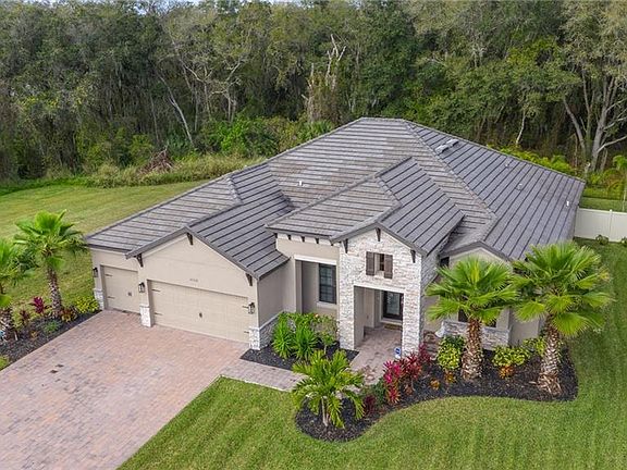 Priced to Sell NOW! The Extraordinary Location of this Amazing Home is surpassed only by the Intimate surroundings of this Unique Community, which features an EXCLUSIVE ENCLAVE of ONLY 19 HOMES w/ NO CDD & LOW HOA -- a significant departure from today's new home communities w/ hundreds of similar homes packed tightly together. An Oasis of Privacy, this homesite offers 180 DEGREES of Mature Preserves surrounding a secluded saltwater pool & spa w/ extended lanai. The Front Elevation features Decorative Stonework & Accent Corbels for an Architecturally Stunning First Impression. Impeccably maintained, this "One Owner" home has a contemporary flair w/ an infusion of natural elements for a truly spectacular living experience. The substantial faux wood cross beams, together w/ a floor to ceiling faux stacked stone accent wall, beautifully blends w/ the Wood Grain Wide Plank Coretec flooring. The Magnificent Chef Worthy Kitchen features staggered 42 inch cabinets, Quartz, undermount lighting, & S/S appliances. The Light & Bright Owner's Retreat is cozy & comfortable, & includes an en-suite bath w/ double vanities, a Walk In Shower, & a MASSIVE Closet. Presently, the second bedroom is utilized as a large office but can easily double as a second Owner's Retreat. The 3rd & 4th bedrooms are roomy, & the den offers terrific flex appeal. Other highlights include upgraded lighting & fans, fitted blinds, fencing, & your very own Citrus tree!