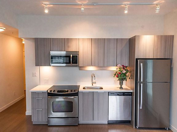 Lavish living at Evolve Condominiums! This corner unit has not one but two large SOUTH facing balconies! Move in ready 2 bedroom 1 bathroom stylish condo with plenty of natural light. 10ft high ceilings throughout except for hallways. Bedrooms feature floor to ceiling windows, the master also has a walk in closet. Kitchen features stainless steel appliances and a quartz countertop. Enjoy the Bright and spacious living room that is just waiting for your ideas! Step out on to one of your two balconies and enjoy the view of the city and the gardens below. In-suite laundry. Pets/rentals allowed. Extensive amenities available including the clubhouse, rec room, 24/7 concierge, fitness room and rooftop patio. A great investment or starter home. Open house Sat feb 5th 2-4 and Sunday the 6th 11-1!