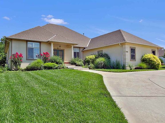 With 6 bedrooms and 5.5 baths, this home can accommodate you and all your family and friends. Hub of the home is the open kitchen, informal dining, and cozy hearth room with fireplace and built-ins. Kitchen is accented with cherry cabinets, walk-in pantry, granite countertops, and large work spaces. Formal living and dining create even more gathering space. What sets this home apart is three master bedrooms. Main floor has two of the masters (one with low profile shower entry) plus two more bedrooms with Jack 'n Jill bath. Need more? The huge lower level repeats another large master suite and the 6th bedroom and bath. Another lower level finished room would make a terrific theatre, office, workout, hobby room. The expansive family/game area features a fireplace, wet bar, and pantry. Storage is plentiful and there are laundry hookups on both levels. 50-year Heritage roof, fully-fenced yard irrigated by well, side-load garage and circle drive. Convenient to shopping, dining, and travel. Award-winning Andover Schools.