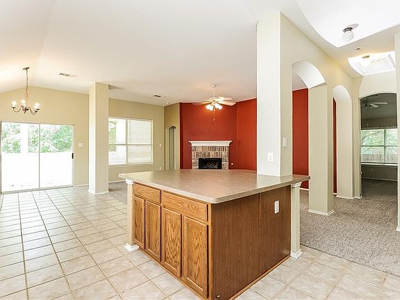 This Fort Worth single story home offers a two car garage, a fireplace, a covered back patio, a kitchen pantry and breakfast bar, a walk in master closet and a master bathroom with separated step in shower and tub.