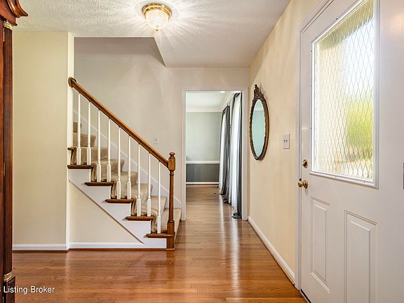 Desirable Location Just Minutes Away from the North Oldham Campus. This 4 bed, 2.5 bath brick home has lots of space and upside. The first floor features a large eat in kitchen with plenty of cabinet and counter space. Off the kitchen is the dining room with hardwood floors, crown molding, chair rail and room for big gatherings at the holidays. There is also a den with a fireplace, and it leads to the deck and the private backyard. The first floor is completed by the living room and half bath. The second floor features the primary bedroom with primary bath, shower/tub combination with tiled surround, vanity area and walk in closet. There are 3 additional bedrooms, laundry and full bath with dual vanity and a ton of closet space. The basement has an office and the opportunity to add a family room and game area and provides additional storage. The home has been well taken care of and is now ready for your personal touches. Plus, close to Award Winning Oldham County Schools, Creasey Mahan Nature Preserve and a quick trip to shopping and restaurants.