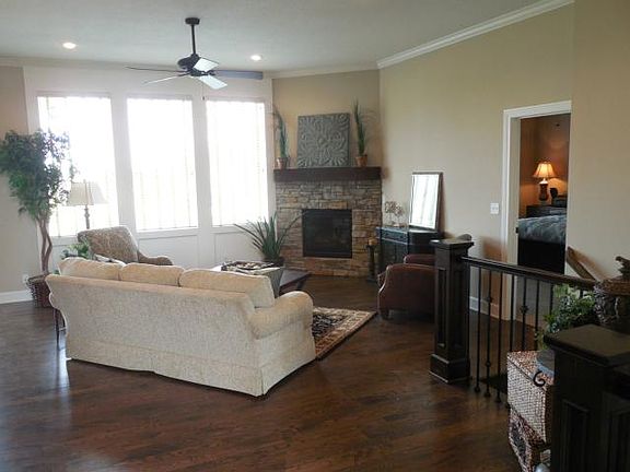 THE TUSCAN REVERSE 1 1/2 STORY BY LAMBIE CUSTOM HOMES. This open floor-plan design has a wall of windows to allow lots of natural light. High ceilings in Great Room with direct vent corner fireplace. Designer chef kitchen with large island and a big pantry. Granite counter-tops throughout kitchen. Stainless steel appliances, including refrigerator. Builder is also including washer and dryer, faux wood blinds. Lovely master suite has open master bath, with euro-shower and tile floors plus large walk in closet.