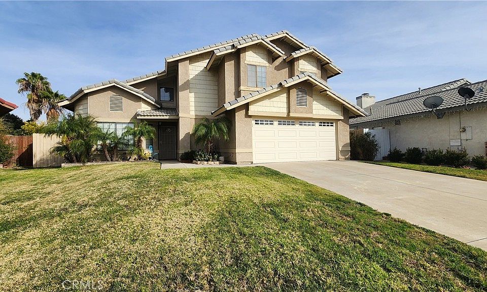 ** Two Story Home with a BIG BACK YARD ** This home features approximately 1,763 square feet of living space with a lot size of 8,276 square feet ** High ceilings as you enter to the living room ** It has 3 Bedrooms and 3 Bathrooms with a large Living Room plus a Family Room with a Fireplace ** Upgraded with Tile Floors and Carpet ** The kitchen has lots of cabinets and counter space ** Separate dining area ** Elegant staircase with a landing and wood railing ** Most of the yard area is in the back giving it more space than other homes. Room for a pool an ADU and plenty of area for kids to play or enjoy your family gatherings ** Covered Patio in the back yard ** Central Air Conditioning and Heater ** Newer Water Heater ** Laundry Area ** Two Car Attached Garage with automatic opener. Garage has direct access to the home and also a side door to exit to the back yard ** Fully fenced in the rear with a block wall and wood on the sides ** Storage Shed ** SAVE $$$, This home has LOW TAXES and no HOA = Lower Monthly Payment **