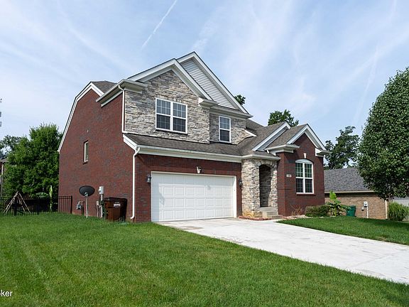 Location!! Conveniently located off of Gene Snyder, LaGrange Rd and Westport Rd. is this Gorgeous Farmington floor plan, featuring an incredible amount of living space. The main floor features a large formal dining room, a spacious kitchen with stainless appliances, beautiful cabinetry including a built in pantry, and granite counter tops, which are all open to the 2 story family room with window wall and wood burning fireplace.. Main floor laundry is also on this level. The Private Owners suite has its own level, with a walk-in closet, and luxurious en suite bathroom. Upper floor has 2 generous bedrooms, a hall bath plus an additional loft area. Down a couple steps from the main level you will enjoy an additional family room perfect for game watching/media room. Small portion of the base