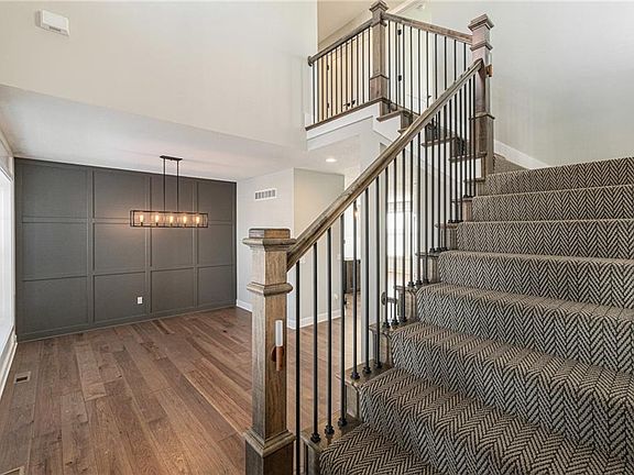 This two-year-young 5 BR, 4 1/2 BA home is loaded with luxurious upgrades & thoughtful design. The professionally finished lower level is an entertainer's dream with a spacious family/media room & 2nd kitchen with enameled cabinets, quartz counters, a refrigerator & a wine cooler. The attractive free-standing bar stays with the home. This level also includes a 5th BR & 4th BA, offering flexibility and convenience. Back upstairs, the added four-season sunroom provides year-round comfort. Step outside to a beautifully designed outdoor living area. The new patio off the sunroom is covered by a modern metal pergola with slats that open & close & custom wooden planters. An adjoining deck offers additional seating for large gatherings & looks out to the metal-fenced backyard. Back inside, the two-story entry is open to a stunning formal dining room with an accent wall. An inviting great room is the heart of the home, complete with built-in cabinetry & a cozy gas fireplace framed by a striking stone surround. The adjoining gourmet kitchen is a chef's delight equipped with a 5-burner gas cooktop with a convenient pot filler, a built-in microwave & oven, & a dedicated coffee bar. The barn door leads to a pantry with newly upgraded quartz counters & additional cabinetry. The breakfast room, with its elegant wainscoting, is bathed in natural light, creating a perfect spot to start your day. A half BA and mudroom/office complete this level. As you head upstairs, the primary suite is a true retreat, showcasing a tray ceiling & shiplap accent wall. A barn door slides open to reveal the spa-like primary bath, which features stained cabinets & a luxurious freestanding tub set against a shiplap wall with a rainfall glass window. The huge walk-in shower & walk-in closet with connecting laundry room, complete this serene space. Two secondary BRs connect to a shared BA, & a 4th BR offers a private bath. Home has been pre-inspected and repairs have been made.