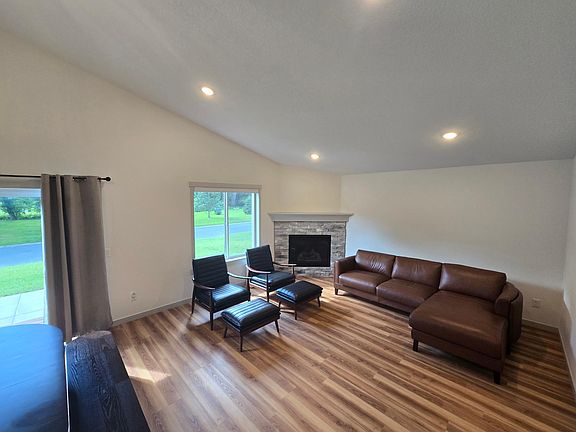 This brand-new modern rambler, completed in 2024, offers 5 bedrooms, 3 bathrooms, and 2,500 square feet of finished living space across two levels, including a fully finished basement. The attached 3-car garage has natural light and comes with a 240V electric car charging outlet. The open-concept main floor features durable luxury vinyl plank flooring throughout, a spacious living room, vaulted ceilings, and a contemporary kitchen with all new appliances and elegant cabinetry. The lower level has a wet bar and provides additional living and entertaining space, ideal for a media room, home office, or guest suite. With thoughtful design, modern finishes, and no carpet for easy maintenance, this home is built for today’s lifestyle.