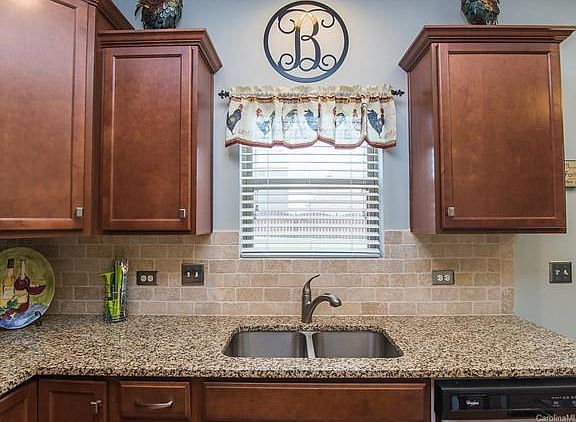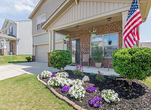 Covered front porch, Open floorplan with wide plank hardwood floors, granite counters, gourmet cabinets, pendant lighting, custom travertine backsplash, office nook, gas logs/great room, loft area, study/office/or 5th bedroom, flat backyard/extended patio/fenced.