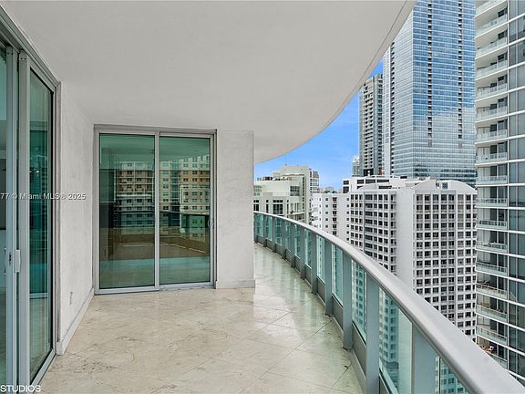 Perfectly positioned to capture the best of Miami, this exquisite corner residence boasts panoramic views of the Brickell skyline, Biscayne Bay, the Port of Miami, and Key Biscayne. Wake up to breathtaking sunrises and unwind with golden sunsets, all from your living room with floor-to-ceiling windows and more than 420 SF of wraparound outdoor space overlooking both the city and the bay.This residence features a thoughtfully designed split floor plan with 2 bedrooms and 2 bathrooms, enhanced by marble flooring throughout, spacious walk-in closets, and a private, dedicated elevator entry that opens into an elegant foyer.The gourmet kitchen is a chef’s dream, outfitted with Snaidero cabinetry and premium European appliances (Miele), blending modern design with functionality.