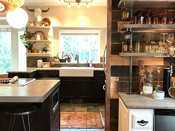 Perfect for entertaining with bright and open floor plan, a great room greets you with farmhouse wood floors and vaulted ceilings. Gather everyone in the remodeled kitchen, with stainless steel appliances, newly added cabinetry and custom storage, granite counters and concrete island, the new layout is a completely open concept design. There is plenty of seating in the eat-in bay, the island or open dining space. The farmhouse sink and large pantry make this a dream kitchen for bakers and families. The semi built-in dry bar with kegerator and accent lighting are perfect for entertaining. This four bedroom plus office/studio home has 3 bedrooms on the upper level, and all 4 bathrooms have been remodeled and updated. The master suite includes a 5 piece bath with rain shower head, soaking tub, fireplace heater and walk in closet. The fully finished basement with the 4th bedroom and bath is perfect for guests, and the office doubles as a yoga studio, craft room or storage space. The third "family space" in the basement with two large windows makes a bright playroom, or shut the curtains for a movie lounge, with the installed projector and HDMI cord run in the wall for cable and gaming systems. Relax in the family room with built in bookcases, gas fireplace with stone surround and shiplap accent wall. The backyard has large low maintenance trees and low water plants. Lush with privacy, the outdoor stone fire pit can be enjoyed year round, and a separate dog run on the side of the house keeps pets happy. The yard also has a section of pea gravel, 6 inches deep to meet childcare safety requirements for a play set when little ones encounter falls. This area would be a great foundation for raised beds, hot tub or turf! The laundry bathroom combo has a stackable washer and dryer, added storage cabinet and deep freezer for those who hunt or make weekly Costco runs! The 2 car garage has industrial shelving, and full gym with squat rack, bummer plates, rubber mat flooring and mirrors. Enjoy the neighborhood paved trails located across the street, and close proximity to grocery stores, Trinity brewery and a short bike ride to Garden of the Gods Park. Air conditioner and whole house humidifier added 2014, exterior paint and new gutters in 2016. Located just minutes from I-25, less then 10 minutes to downtown, 22 to Fort Carson and 15 minutes to the Air Force Academy. Great location! All appliances and projector convey, kegerator bar negotiable.