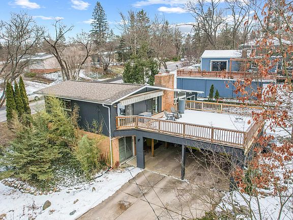 Near the top of Water Hill, this vibrant Mid-Century is an exciting blend of classic contemporary design and artistic flare. The extensive use of hardwood and cork floors, vaulted ceilings and walls of windows throughout accentuate a versatile and unique floorplan. It features a heart-of-the-house living room with fireplace, adjacent dining area, a streamlined kitchen with a chef's hood and Motawi tile backsplash, and den/office space. Upstairs is a renovated bath and three bedrooms, two of which have sliding doors to an expansive rooftop deck. The lower level has a home office/flex space and a full bath. Outside is a striking garden landscape that evolves with the changing of the seasons. In a neighborhood that needs no introduction, this home is just around the corner from Sunset Brooks Nature Area, Bluffs Nature Area and Hunt Park, and is a pleasant excursion to Knight's Market, Big City Small World Bakery, Kerrytown and Downtown Ann Arbor! Home Energy Score of 4. Download report at stream.a2gov.org.