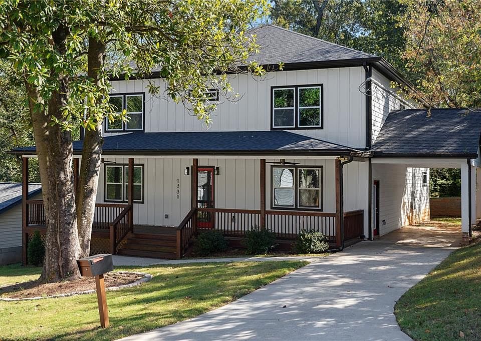 Experience modern farmhouse living at its finest. This 5-bedroom, 3.5-bath Atlanta home blends refined design with everyday comfort through open spaces, natural light, and elegant finishes. The open-concept layout showcases soaring ceilings and a stunning chef’s kitchen with a large island, designer backsplash, and effortless flow between the dining and living areas—perfect for entertaining or relaxing nights in. The owner’s suite offers a serene retreat with a spa-inspired bath featuring a soaking tub, walk-in shower, and dual vanities. Additional bedrooms are bright and versatile, ideal for guests, kids, or a home office. Outdoor living shines with a welcoming front porch, expansive rear decks, and a spacious backyard ready for your dream pool or garden. Perfectly located near top-rated schools, dining, and major highways, this modern farmhouse combines timeless elegance, comfort, and convenience—all in one beautiful Atlanta address.