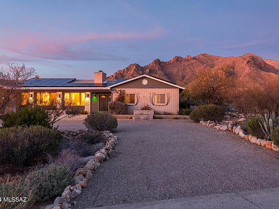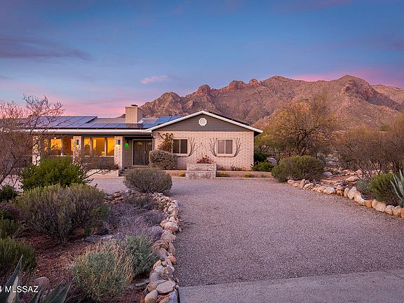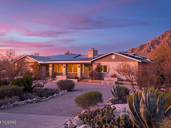 SELLER OFFERING $10K toward Interest Rate Buy Down or Updates! Nestled at the Top of the Hill near Pima Canyon, is this Perfectly Sited .83 Acre Desert Dweller's Dream Home with Solar + Rain Water Harvesting. Front Porch w/Sunset & City Light Views! Entertain in Style in the North Facing Backyard w/Pool + Incredible Mountain Views, backs to the Southern Boundary of Pima Canyon. Enjoy Spacious Family Living w/Formal Living Room/Dining Room, Wood Beamed Ceilings, Fireplace, + Picture Windows. Large Cook's Kitchen w/Granite Island, Breakfast Bar, Walk-In Pantry, + Maple Cabinets w/Pull Outs. Family Room w/Wood Beamed Ceilings + Built in Entertainment Center. Split BR Plan w/2nd Primary Suite-Perfect for In-Laws/Extended Family. Remodeled Primary Bath. Lot Offers Buildable Space for a Casita. The Remodeled Primary Bath Offers a Walk-in Shower with two Shower Heads and Bench, Dual Vanities with Granite Countertops, Updated Lighting (including under cabinet night lights).