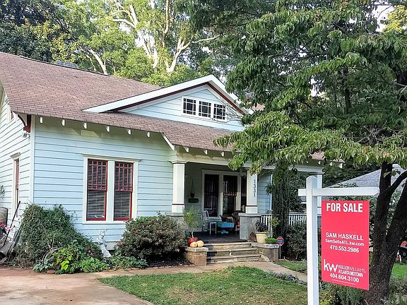 Charming bungalow located in historic East Point's progressive neighborhood - Colonial Hills. This beautiful home features period details throughout including a covered front porch, hardwood floors, 10+ foot coffered (rectangular sunken panels) ceilings, exposed brick walls and original fireplaces with original tile. This house features spacious bedrooms, a master suite with a walk in closet and spa master bath. Large back deck overlooks private backyard, where a separate framed utility building is located, perfect for a workshop or storage shed