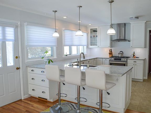 One floor living w/gorgeous renovated kitchen, all new windows, hardwood floors. Abundant natural light from southern exposure windows. Dual-sided wood fireplace between dining and living areas. Sleek and modern kitchen with polished granite counter-tops, Bosch 5-burner gas stove, Electrolux W/D, stainless-steel apron sink. Custom Hunter-Douglas blinds, central air, spacious bedrooms w/possible 4th bedroom, terrific layout. Generous yard w/mature trees, quaint deck to enjoy sunny afternoons and conveniently located just minutes to Cornell or downtown Ithaca.