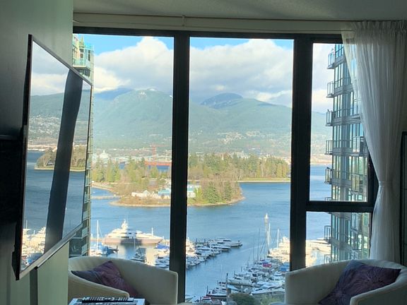 This one bedroom condo is elegantly furnished with amazing view from the north shore, mountains and marina from every room. Steps away from restaurants/ cafes/ shops/ banks/ seawall / bus station. - Furnished - One free parking spot - The unit includes: Cable TV (basic), Wifi Internet, hydro (cap at $40), washer/ dryer/ full kitchen, linens/ towels - Building includes: 24hr Concierge, gym, party room, meeting room - No Smoking - No Pets - No Subletting - Deposit is 1/2 months rent - Tenant's insurance required - Previous tenancy record & credit check required - Tenant to pay Move in fee as per Strata If you are interested contact me to schedule a showing. 6 months minimum