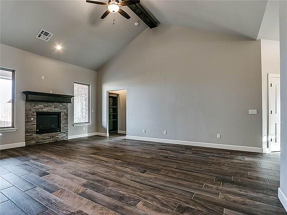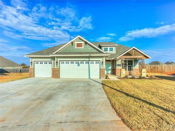 Welcome to Sonoma Lakes! Great location! Moore Schools. This Craftsman Style, Evanston Legacy design, offers over 1800 sqft of spacious living!! Fall in love with the open main living area featuring a vaulted ceiling with stained wood beam. This home also features four bedrooms, utility room, fireplace, covered patio, 3 car garage and so much MORE! Beautiful OPEN KITCHEN with island and farmhouse sink, luxury countertops, large pantry, and custom cabinetry. Master suite with double vanity, soaker tub, separate shower, and large walk-in closet. This home also features a sprinkler system and a fully sodded yard. 2-10 warranty. *Fully fenced*