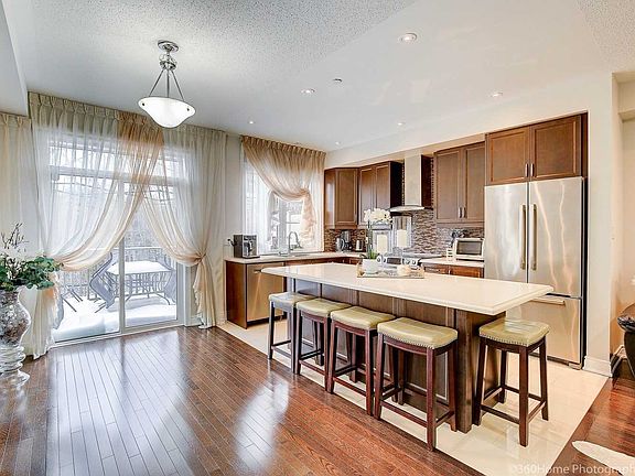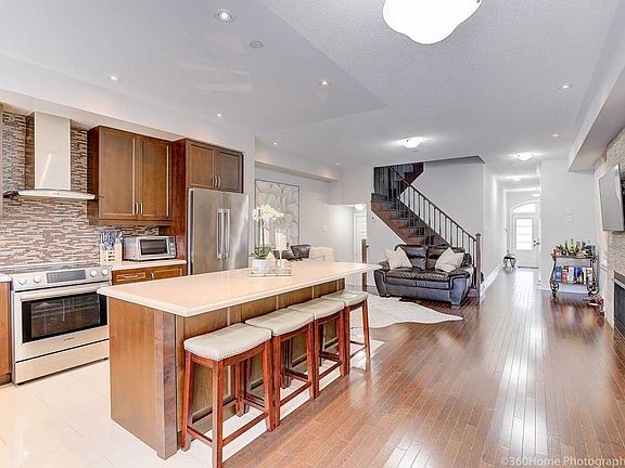 Stunning End Unit 3-Storey Townhouse In The Luxury Mackenzie Ridge Terrace Backing To Spectacular Ravine. Fully Upgraded With The Hardwood Floors Throughout , Cosy Living Room With The Gas Fireplace. Open Concept Kitchen With The Centre Island. Ss Applainces, Extended Kitchen Cabinets, Quartz Counter. Very Bright And Freshly Painted W/Benjamin Moore "Silver Satin" Colour. 9Ft Ceiling, Lots Of Potlights. Large Family Sized Terrace . Finished Basement