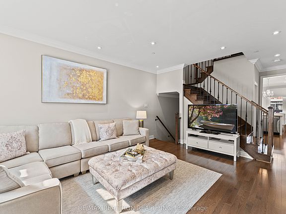 End unit townhomeHardwood floorsCrown mouldingsPot lightsKitchen with center islandQuartz countertopStainless steel appliances