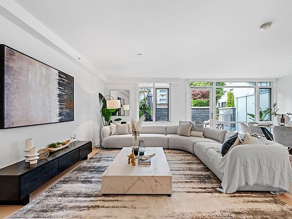 Welcome to 1331 Ambleside Residences, a boutique concrete building in the heart of West Vancouver’s vibrant beachside community. Defined by its contemporary architecture and signature open-air glass-canopied walkway, this address embodies sophisticated coastal living. Residence 202 offers 2 bedrooms and 2 bathrooms with a bright, open-concept layout designed for comfort and elegance. Enjoy air conditioning, radiant in-floor heating, and high-end finishes throughout. The chef-inspired kitchen features Italian Scavolini cabinetry paired with premium Gaggenau appliances, while the spa-like bathrooms provide a daily retreat. Step outside to your spacious private patio, perfect for relaxing or entertaining in privacy. Experience the best of West Vancouver living, steps from the seawall, shops
