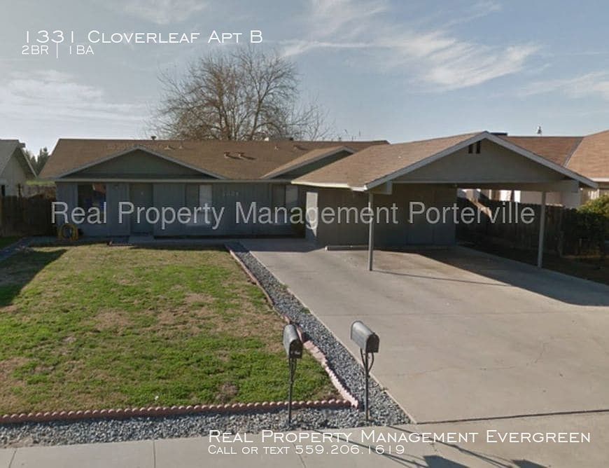 This is a 2 bedroom, 1.0 bathroom, multi family home. This home is located at 1331 N Cloverleaf Pl #B, Porterville, CA 93257.
