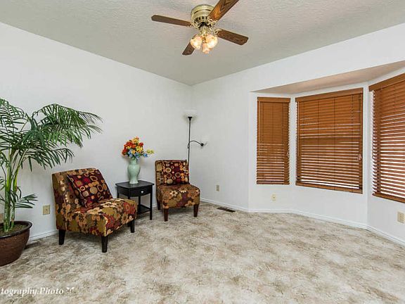 Vista Ridge is a designated age restricted community so please be approved with HOA prior to making offer. NEWLY PAINTED INTERIOR with spacious great rm. floor plan and bedrooms on each end of home PLUS FLEX RM. behind garage you can use for storage, workshop, hobby/craft rm., etc. You can do whatever you'd like in back yard. Lots of built in's and storage. IDEAL part, full or some time residence.