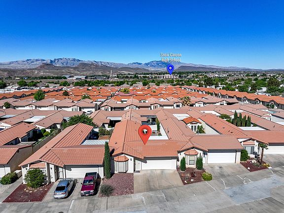 **Cute and Clean Vista Ridge 55+ Home!** This is St. George retirement living at its best - ZERO yard maintenance, and just minutes from golf, trails, and more. The home has been fully replumbed, and the HVAC system was recently replaced, with added mini-split units for extra comfort. Updated LVP flooring adds a fresh look. The garage is perfect for projects or just ''puttering around,'' and the gorgeous private courtyard offers west-facing views to enjoy at the end of the day.