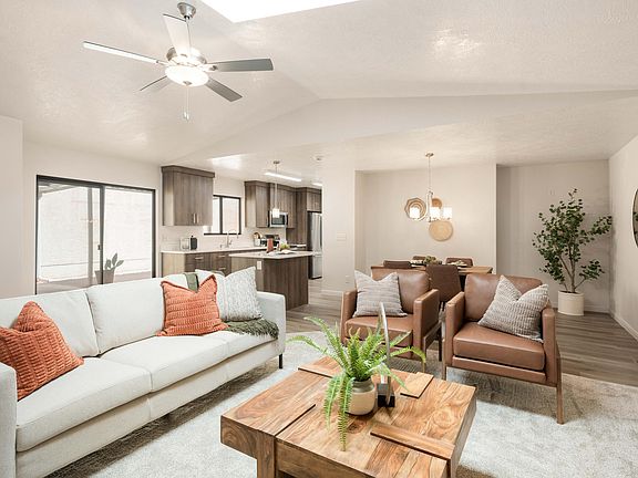Prepare to be amazed by this jaw-dropping interior remodel—seriously, it's stunning! This completely updated 2-bedroom, 2-bathroom home in the Vista Ridge Estates 55+ community features modern upgrades, including a brand-new kitchen, stylish bathrooms, upgraded flooring, fixtures, and more. The vaulted ceilings and skylights create a bright, open feel, and the large pantry will hold your Costco haul perfectly! Outside, you'll find low-maintenance landscape and a covered back patio with a ceiling fan, perfect for relaxing. Conveniently located near Home Depot and grocery stores like Digby's, Lin's, and Albertsons, and just a short drive from Snow Canyon State Park and Tuacahn Amphitheatre, this home serves up the comfort and convenience you deserve!