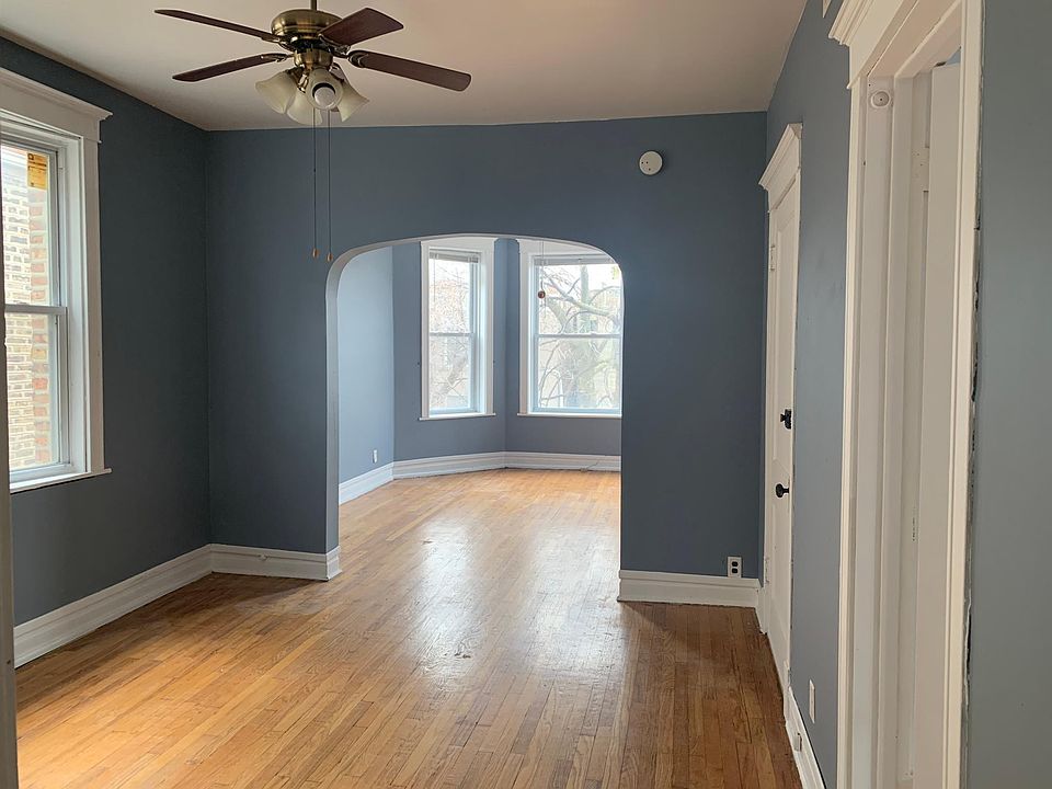 hardwood floors throughout knee-to-ceiling bay windows in LR BRAND new kitchen appliances vibrant new paint throughout full bath, completely redone with brand new vanity, tile & tub/shower ample closet space secure front gate and porch updated kitchen cabinets, backsplash, rebuffed floor 1250 sq feet total near North Ave & Central Park 1331 N Ridgeway 2nd floor shared yard, concrete, fully fenced central heat enclosed back porch for additional storage walkable area just West of the huge Humbolt Park green space. free street parking water & trash services are included, tenant pays electric & gas
