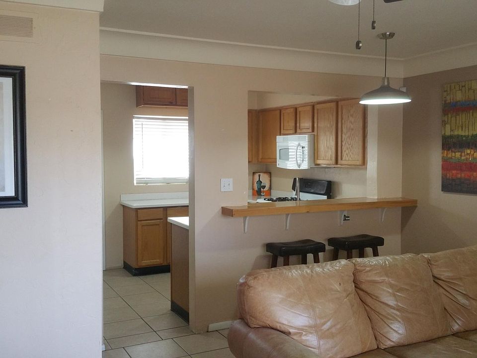 Just 1 block from both the UofA campus and the Banner University Medical Center. Two bedroom, 1 bath. Living room, kitchen, all new appliances. Nice ! Enjoy your own space ! Includes reserved (your own driveway) parking, private fenced patio, air conditioning, your own washer and dryer, built-in microwave, and dishwasher. Off-street parking. This rental has many extras and a great campus location. Equal Housing Opportunity. This rental is the larger unit of a residential 1-story red brick duplex in the historic North University neighborhood. Owner/agent.