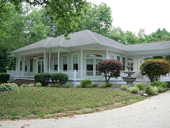 Custom built Southern Plantation home with wrap around porch. Two primary suites on the main level with formal dining room, living room and newly renovated kitchen. Windows surround the entire house for lots of natural light All new stainless GE appliances convey. Crown moulding adds to the custom design of this great house. Beautiful hardwood floors and new tile work is being added. There's a full finished walk out basement. Large office with oak bookcases surrounding the entire room. This could be used as a bedroom. Huge open family with a kitchenette. Laundry room in basement. Three car garage with covered breeze way .All this on over 3 acres I Plus a huge shed building with concrete floor and electricity. Beautiful mature trees outline the entire property.