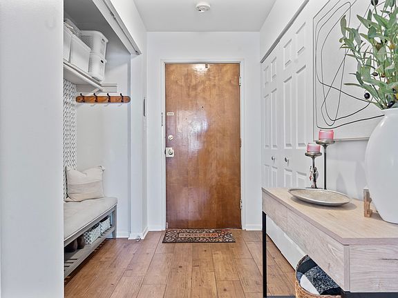 Welcome to this light and bright 2-bedroom, 1.5-bath first-floor condo located in the desirable Point West community tucked away at the back of the complex adding to the appeal of this property. A thoughtfully converted entry closet creates a practical drop zone with a bench for putting on shoes and hooks for coats and bags-adding both function and charm. This spacious and airy unit features a large living and dining room, perfect for relaxing or entertaining. The convenient slider door leads to the inviting and private patio space - this is the perfect spot to enjoy your morning coffee or unwind in the evening after a long day! The eat-in kitchen features ample cabinet and countertop space, stainless steel appliances, and a convenient pass-through opening to the living room-creating a more open feel and easy flow for serving or socializing. The primary bedroom includes generous closet space and a private half bath. A second large bedroom is conveniently located near the full hallway bath with a tub/shower combo. The laundry facilities are conveniently located close by on the same floor along with a private storage locker and bike room. The condo is situated in a well maintained elevator building with fantastic amenities including an outdoor pool, playground and tennis courts. Enjoy the ease of first-floor living in a well-maintained, move-in-ready home close to shopping, dining, and major routes making this a commuter's dream. Monthly assessment includes: water, gas, common insurance, lawn care, snow removal, scavenger, pool and tennis courts. No rentals allowed. Schedule your showing today!