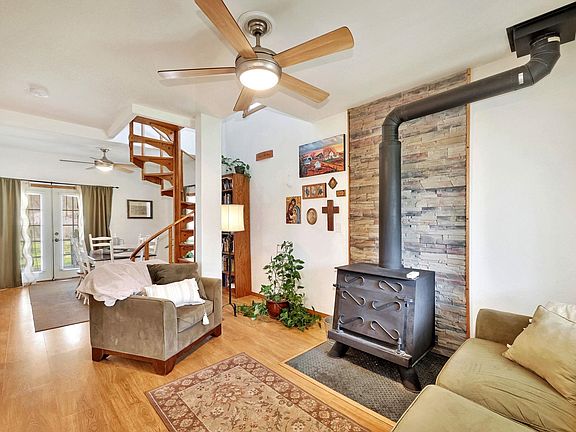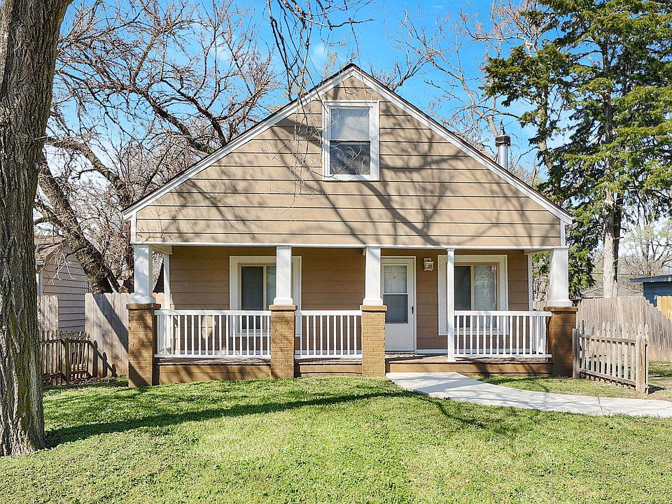 Welcome to this delightful 1 1/2 story bungalow. This charming home offers a ton of character! As you step inside, you'll immediately notice the cozy ambiance and inviting atmosphere. The living space is adorned with wood laminate flooring and new windows throughout, creating a warm and welcoming environment for relaxation and entertainment. The centerpiece of the room is the wood-burning stove, perfect for cozying up on chilly evenings and adding to the home's rustic charm. The kitchen includes all appliances including the washer and dryer to remain with the home. Upstairs, the unique half-story offers versatility having two additional bedrooms, home office, or cozy reading nook. The possibilities are endless! Step outside a covered deck providing the perfect spot to simply relax. The privacy fence ensures seclusion, while the storage building offers ample space for all your outdoor essentials. Notable updates include a roof that is only 2 years old, providing peace of mind for years to come. Don't miss the opportunity to make this charming affordable bungalow your own – schedule a showing today and experience its undeniable appeal firsthand!