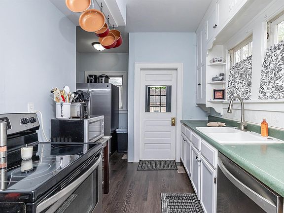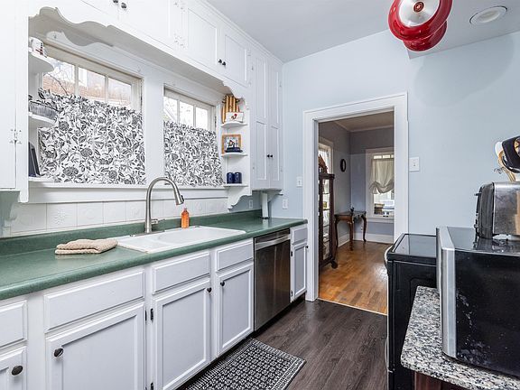 Charming home with tons of original features and character! Great flow and separation as you enter the foyer with the staircase with a large living room on the left and notice French doors leading into the dining room to the right. Head around in either direction and you find the spacious L shaped kitchen, a mud room and a half bath. Upstairs bedrooms are large with closets, a full bath, and a great sunroom. Plenty of storage and possibilities in the basement. Great fenced yard leads to the two car garage and spacious concrete parking pad. How about that front porch? Just in time for coffee in the morning or lemonade in the evening while you wave to your new neighbors!