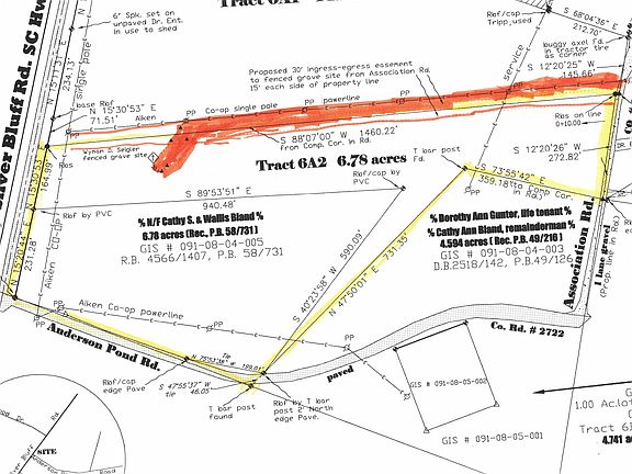 This is a perfectly situated lot located within minutes of downtown Aiken and a short drive to Augusta. This property is just outside the city limits with commercial potential to include public storage, multi unit residential potential with over 350 feet of road frontage on Silver Bluff Road and approximately 540 feet along Anderson Pond Road. There is an easement along the North end of property that accesses parcel # 091-08-04-006 and includes a family burial plot. This parcel is zoned residential and parcel #091-08-04-005 is agricultural.