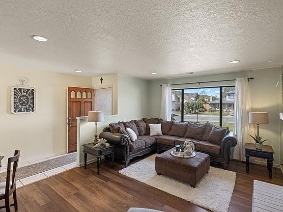 This warm and welcoming 4 bedroom, 2 bath home tucked on a quiet cul-de-sac is ready for new owners. The floor plan offers a spacious living room w/ large picture window & wood burning fireplace and a separate family room that melds with the large kitchen and dining area. This light filled room with ample counter space & easy access to the backyard is ideal for indoor or outdoor entertaining. Convenient inside laundry, easy-care luxury vinyl plank flooring & tile throughout the home help make clean up a breeze! Lovely light bright primary suite plus three additional bedrooms provide room for everyone and/or a home office and weight room! Enjoy summer afternoon gatherings under the covered patio in the backyard or an evening glass of wine under the stars while relaxing in your hot tub. Making apricot jam or pies w/ apricots from your own tree will make you the envy of all your friends! This property located close to shopping and services is a wonderful place for you to call home!