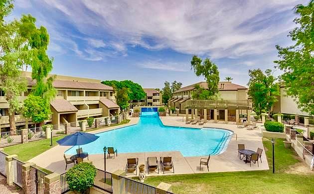 Bedroom 2 Bath Condominium Refreshed with new paint new flooring Gated Entrance, This 2nd Floor Unit sit on Quiet w/ Outdoor Patio/Balcony. Perfect to Enjoy Morning Coffee or Relaxing Evening! location just mins from MCC & 101 & 60 Freeways. Large 2nd Bedroom & Full Hall Bath, Inside Laundry w/Washer & Dryer. Resort-Style Community Pool , BBQ, Private parking water, sewer and trash removal ((( included ))) Available July 2022 Rental criteria $5000 gross monthly Credit score above 650 Good rental history