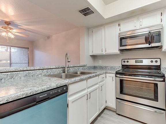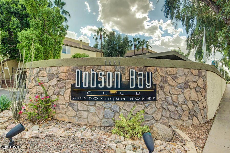 Everything is new in this perfectly located ground floor unit bordering common area & pool in gated community of Dobson Bay Club. Light & bright with new tile floors, fresh paint, fixtures & water heater. Kitchen boasts new cabinetry, countertops, sink & all stainless appliances, including washer & dryer. Both bathrooms completely re-done...Master walk in shower with subway tile enclosure, hall bath tub with tile enclosure & new vanities. Slider opens to covered patio area, flower bed & storage unit. Centrally located near 101 & 60, colleges, restaurants, airport. Hurry, won't last!
