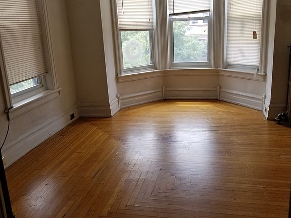 Newly renovated wood floor house, 5 bedrooms, huge basement, Huge 3 stories tall house, Garage, Huge Living Rm, Dining Rm. 1.5 Baths, private back yard, balcony, porch Comfortable, quiet living. No Pets Proof of job, income. Bright clean sunlight from bright clean new windows Fresh air Tenant pay water, sewage, electric, gas. Must have credit score of 650 or higher. No Pets. Newly renovated.