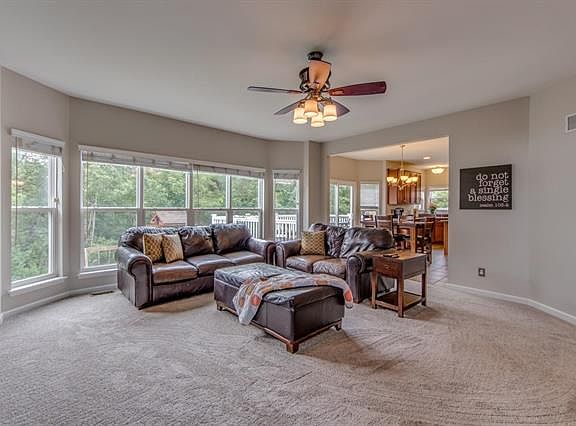 Here it is, that impossible to find 2 story brick w/a level walk-out basement backing to trees! Nearly every option the builder offered went into this approx. 2700 sq ft home, located on a premium lot in Creekside sub. The open floorplan includes 9 ceilings on main level, living rm w/FP, open stairwell to all 3 floors & a showstopper family rm w/a 6 window bay capturing this private setting. The large 19x16 low maintenance deck offers plenty of room to entertain! The open kitchen features a breakfast rm, large island, gas range, 42 cabinets & clear sight-lines to the family rm. A 3 car garage & main floor laundry rm are icing on the cake. Of course, the master suite has a vaulted ceiling, bath w/sep shower & soaking tub plus large walk-in closetevery bedrm has a walk-in closet! Built to accommodate any future design, the lower level includes a 9ft pour, plumbing rough-in, egress window & doors to a patio. Zoned HVAC, all new carpet & freshly painted interiormove right in and enjoy.